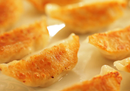 (1) フライパンにサラダ油を熱し、ギョーザを焼く。