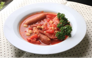 ソーセージ、豆のトマト煮込み